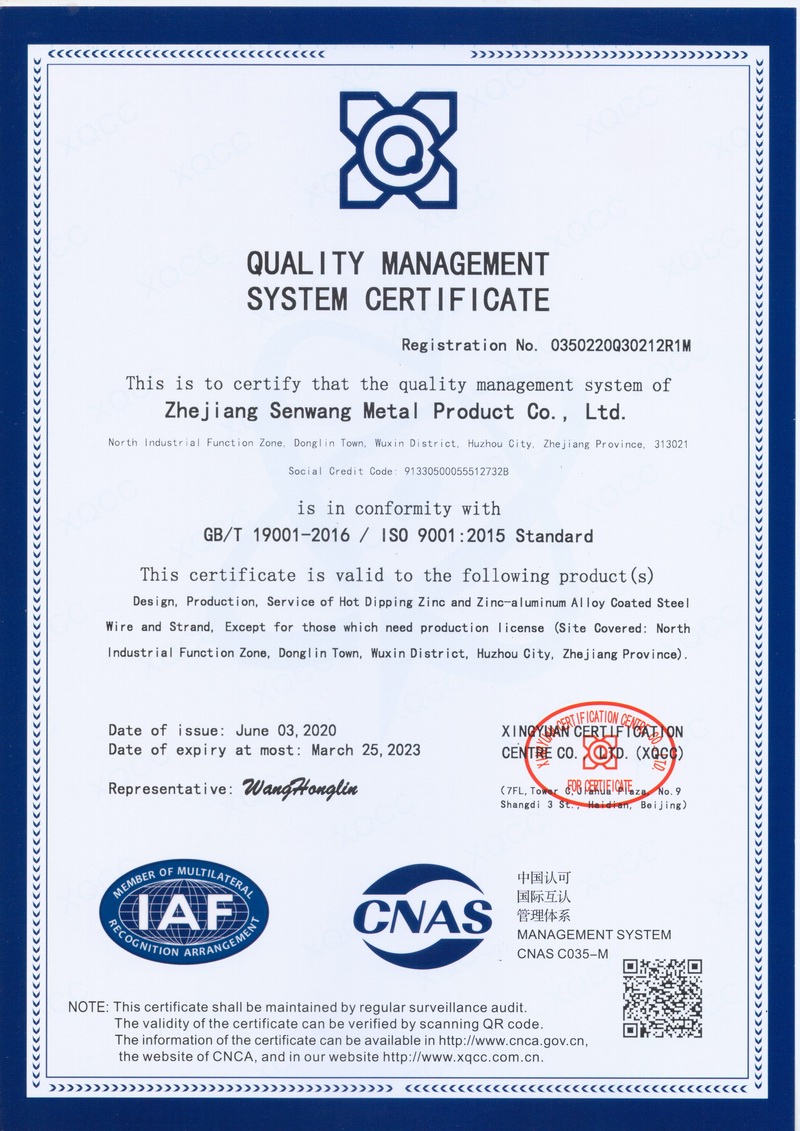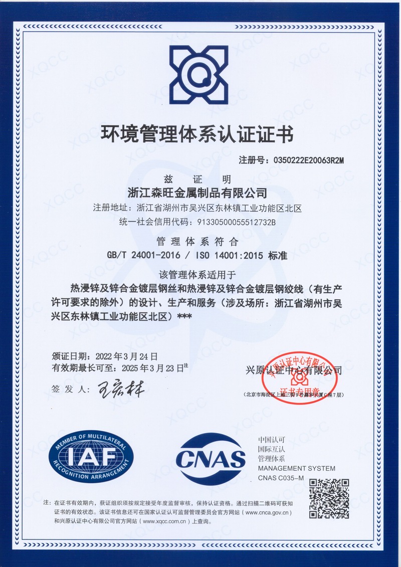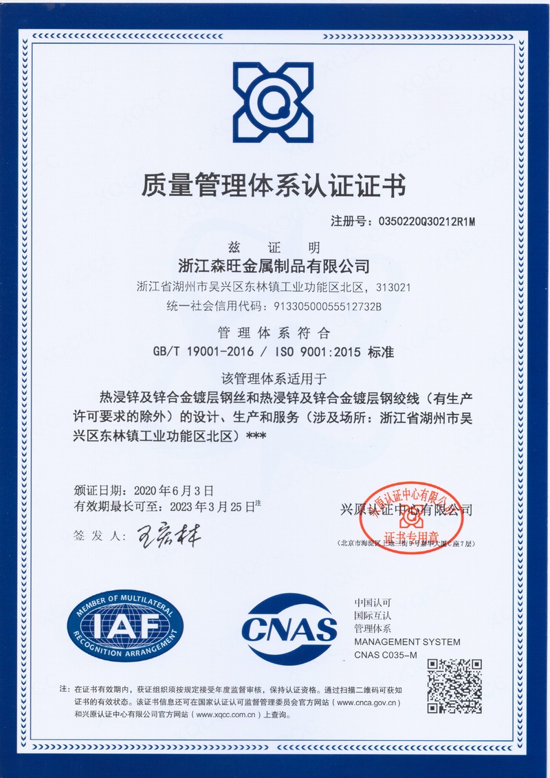 浙江森旺金屬制品有限公司成立于2012年,坐落湖州市吳興區(qū)東林鎮(zhèn)工業(yè)功能區(qū)。公司專(zhuān)業(yè)從事各類(lèi)鍍鋅鋼絲、鋼絞線等產(chǎn)品的開(kāi)發(fā)及生產(chǎn)。目前產(chǎn)品已廣泛應(yīng)用于各類(lèi)通信光電纜,電力輸送,電氣化鐵路工程,各類(lèi)堤壩防護(hù)及農(nóng)業(yè)溫室等工程領(lǐng)域。公司秉承“追求卓越品質(zhì),創(chuàng)建卓著信譽(yù)”的經(jīng)營(yíng)理念,始終堅(jiān)持專(zhuān)業(yè)化、規(guī)?;慕?jīng)營(yíng)模式。